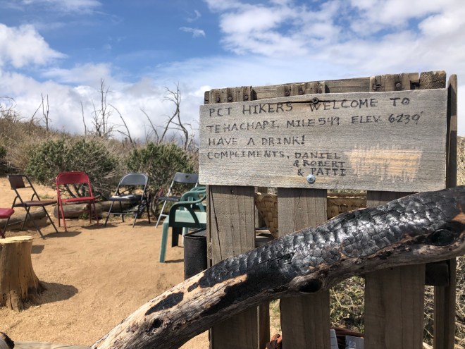 Tho boys were behind us all day as they slept in a wee bit longer than Laura and I had planned. They eventually caught up to us at Highway 58 where I thought Greg would be waiting. The funny part of yesterday’s story is that I couldn’t wait for the beer I knew he had. The beer I he had already told me he was sharing with other hikers as they came off the trail. For the last 3 miles, I kept turning corners on the trail looking for his truck. I thought I had my eye on it but i had been fooled as what I had been staring at was not his truck. Well, long story short he was providing plenty of Trail magic to hikers at Willow Springs Road–which is an easier hitch into Tehachapi. We unfortunately were waiting 8 miles after that particular crossing. When I finally was able to get ahold of Greg–of course there was no cell service where he was eagerly waiting to get a photo of me–I had to explain that we had already passed that location. It would have been perfect to meet him where he was and I was sooooo glad that he was able to talk and hang with some hikers but I guess I wasn’t clear on our meeting spot.