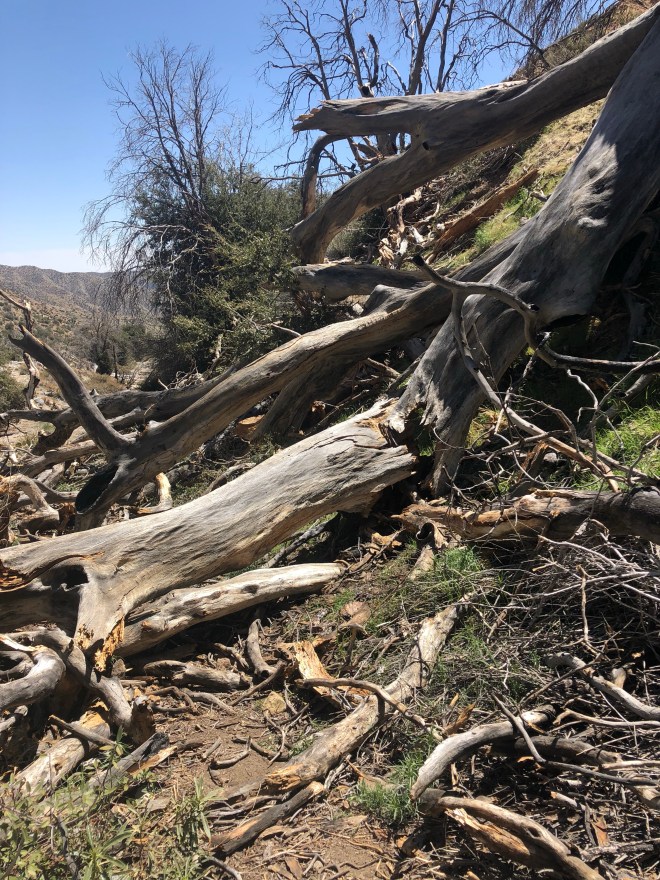 We have roughly 26 miles to go until we are near Big Bear. Our next chance for water is 16 miles so tomorrow we hope to crank out a 20 mile day. That will leave us with 6 miles until we can get a hitch into Big Bear Lake, where my resupply box should be waiting at the hostel. We plan to check that place out and possibly stay the night in town somewhere so we can cleanup again.
