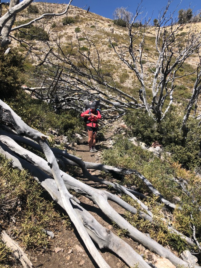 We tried really hard to get on the trail to beat the heat today. To our advantage though, the region we are in had slightly cooler temps than the southwest region around us. We still managed to be hiking by 7am. I knew today would be a tough day for me. It turned out to be a tough day for everyone tho. We climbed out of mile 226 and made it to camp this afternoon around 5pm at mile 239. The entire day we hiked uphill, starting at 3200ft to end at 7800ft. The trail was just brutal. Very defeating.