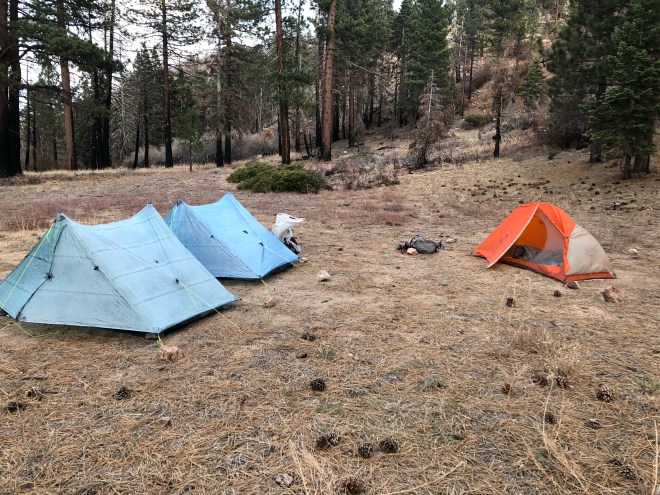 It’s weird that we haven’t seen many hikers in this stretch. Currently there’s 10 hikers, including us 3, at this campsite. We never saw Squish today, so he must have got his miles in early. But there is a couple (Sunny & Pusher) with their dog (Deeds) who I saw at least a week ago. They are nice, this is their second attempt of the trail.