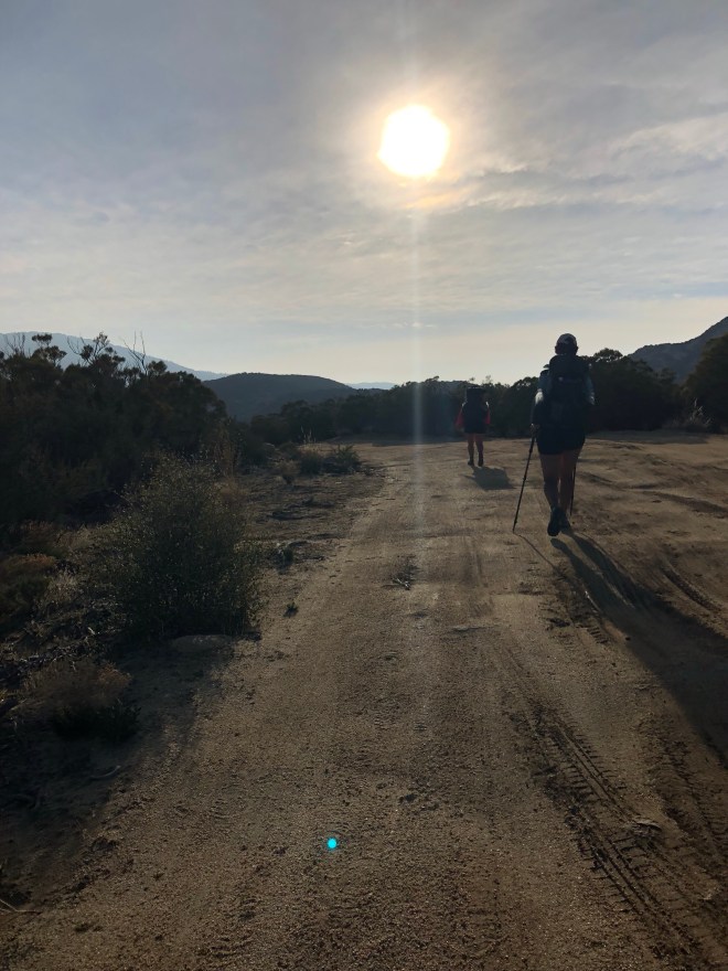 The rest of the day was quite defeating tho. To say the least, it was an uphill battle today. From 154.6 this morning to mile 166.6 this afternoon we climbed, a lot. There was a .5 mile downward hike to a horse trough, which was just pure torture coming back up with a mere 2 liters of water in hand. Then there was the fact that we had a decision to make at a fire closure up ahead. From Mile 166.6 the Fobes Trail (6 miles) takes you down towards Lake Hemet which was plan A, with a hitchhike to the campground as we’d be walking on highway 74. Plan B was hike the newly reopened 2 miles of the PCT towards the Spitzler Trail that would drop you out at the Hurkey Campground, but that added another 12 miles. Decisions! As Laura was headed toward Spitzler, Emily and I planned for Fobes.