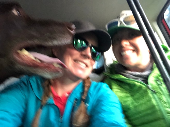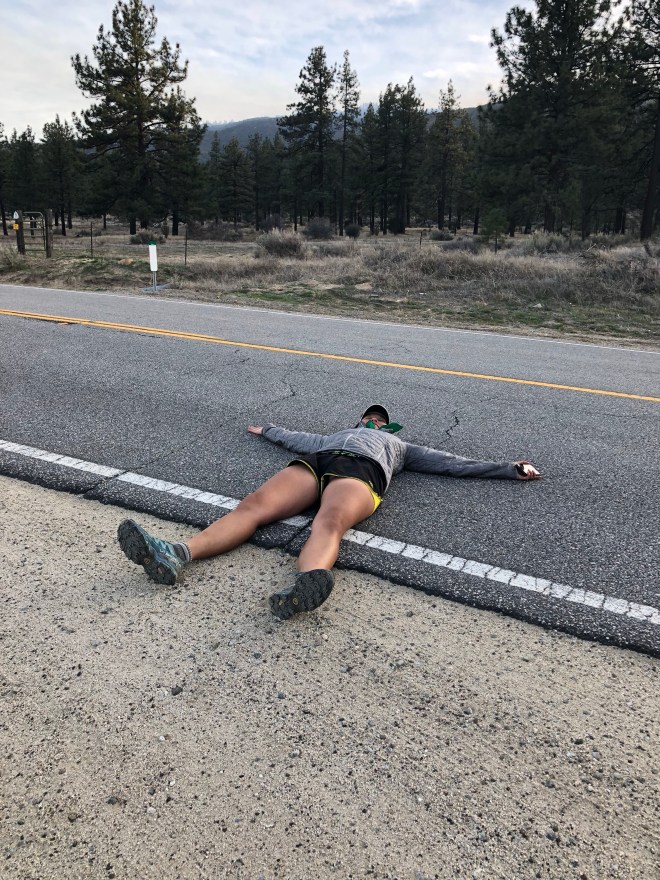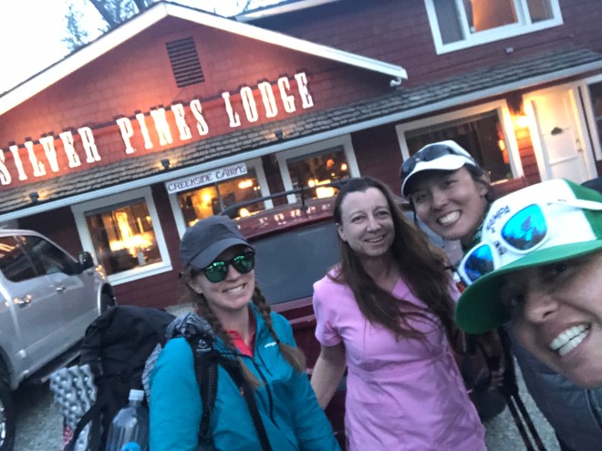 What ended up happening was this: on our 3rd lunch break for the day Emily and I had a chat about going into Idyllwild tonight. The reality was we were already beat up after climbing 12 miles today. No rest days and our bodies were screaming this afternoon. It wasn’t fun anymore. After that chat we found Laura just half a mile in front of us trying to figure out her own decision. It was super windy and the extra 2 miles to the Spitzler trail would have been on a dangerous ridge. So the ladies were back together again, and the decision to take the Fobes Trail to a forest road to the 74 Highway (6 miles down, ugh) had been made. The forest road was disheartening. Each of us had hit our walls. We were tired, hungry, our feet hurt, we stunk, and the terrain just kept going down. Not a soul in sight. Miserable we all kept chugging downward to the highway. 18 miles to seal the day. Now that we were off the mountain side, the next order of business was to get a hitchhike down to Idyllwild. With the sun setting and the temperature dropping the amount of cars that rolled by were few and far between. Totally different from our hitchhiking experience in Julian–which was pretty much immediate. There was a lady who passed us by in a Subaru (Doran, you were sooooo right!!!) with her dog, we thought she was the ticket. But she wasn’t at first, she pulled into the forest road just passed us and let her dog run for a few minutes. When that was done, and we’d still been passed up by other cars, she drove to the end of the road and rolled her window down and asked where we were headed. Her name was Barbara and her dog was Rio. The 5 of us crammed into her Subaru, the hatchback BARELY closing, and Rio not really sure what was going on. Barbara dropped us off at the Silver Pines Lodge where we are currently resting our feet. Laura and I WALKED .2 miles to get pizza and beer which seemed like 10 miles as tired as we were. Emily was showered by the time we got back with dinner and then we gorged and laughed about our brutal day. The plan now is to stay in Idyllwild until Sunday. It’s time for a break. Laundry. Recharge. And reset.