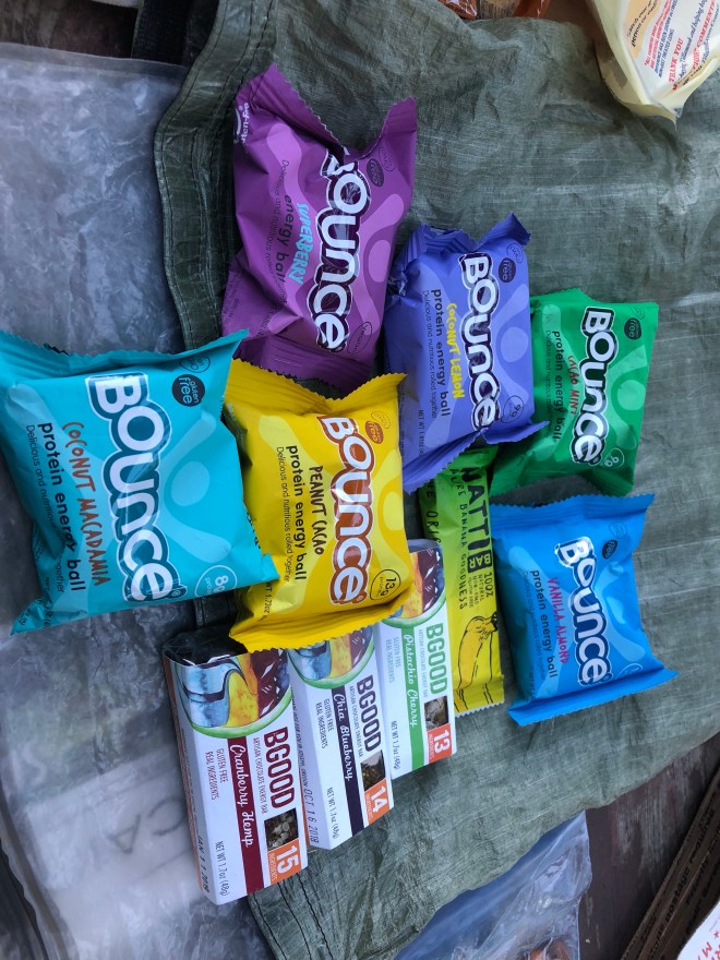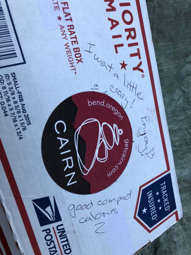 I finally finished my strawberry shake and went to setup my tent. I met Charlie Horse–who I know I met in the desert miles ago and Cowboy, another guy from Washington. I went through my resupply box and gave some of my food to Cowboy. He’s been hiking fast and his resupply May not make it here until tomorrow. I was going to leave my leftovers in the Hiker box, but giving it to someone seemed better. He was happy to get some free bars, ramen and some hot chocolate.