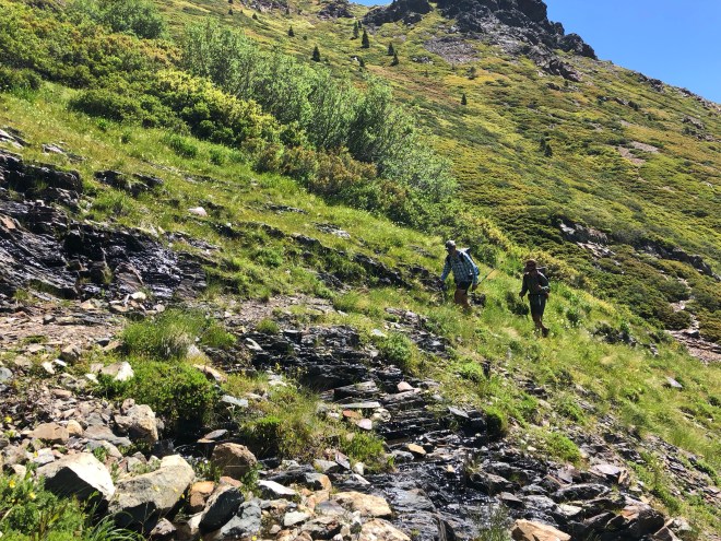 It took me less than an hour to get my stuff packed and on the trail. I even ate before leaving. I was hiking by 730 and knew that I wouldn’t see a water source for 2.5 miles. When I finally made it to Mule Ear Creek, I cameled up, filed up my bottles and headed back to hiking. On my way back down the trail, I stupidly was looking at my phone from the moment I left the creek. Thankfully it was no more than 500ft before I realized I had left my trekking poles at the water source. Back up the trail I went. There they were, right where I left them.