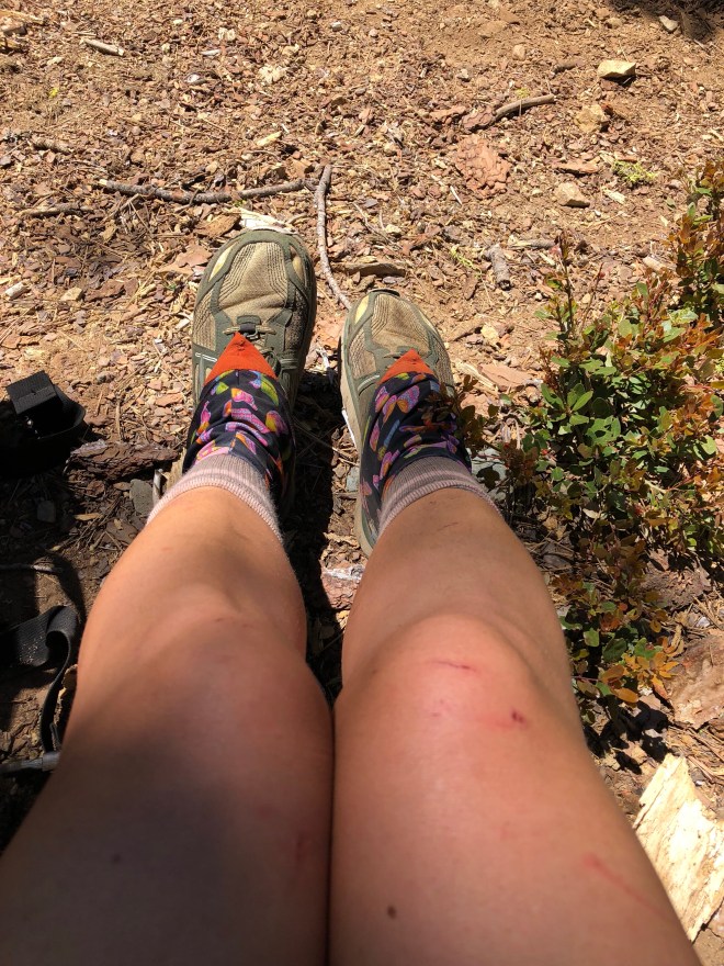Well, let’s just say I thought I went to sleep alone last night. I’m not sure what time it was when I heard the first crunch, crunch, crunch of tree branches near my tent. Of course, heart racing, I stayed still as to not alarm whatever was nearing my personal space. I let whatever it was sniff around and eventually heard the clumsily steps of a hoof. Deer. At least 2 of them. Clearly I had chosen their preferred sleep space. As they wrestled around, I slowly went back to sleep. Around 1am–this time I looked at my phone–I must have turned over in my tent alarming the deer. I heard them scamper about only to settle back into my personal bubble again. Ugh. This night was going to last forever. Again, back to sleep I go. Around 530 as the sun was starting to shine, I heard them wrestle once more. I peaked out the tent to see them heading back down the hill. As much as my heart raced thinking I was going to be eaten by some starving animal, I survived my 2nd night of camping solo on the PCT.