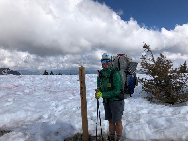 We were hiking before 7am. For the first few miles I felt like my legs were back in business. The 4 miles to Dicks Pass were mostly uphill. We knew we’d see snow again but to our delight it was way better than we anticipated. On the way to the pass, the snow was minimal on the trail. Up top, and down the other side it was worse but only for maybe a mile. As it was still early, the snow was mostly icy. Neither of us had our microspikes so we just took it slow. I took a few spills, of course, and always landed safely on my butt. Note to self: glissading is for slushy snow only. Ice glissades hurt when you reach the end.